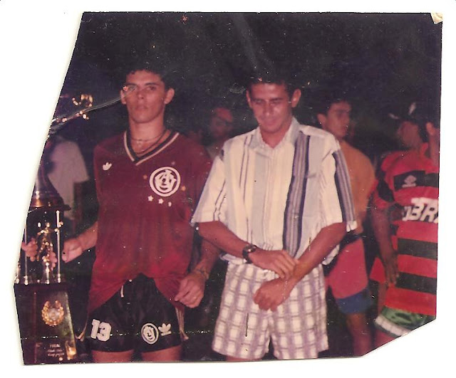 Recebendo do Diretor da Liga de Futebol, Luiz Carlos, o Troféu e uma quantia razoável no envelope