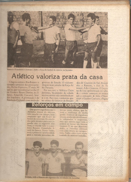 No ano de 1991, através de Gualter Craveiro, o ténico Júlio D'Anzecourt veio treinar a nossa Seleção de Tarauacá para participar do intermunicipal daquele ano, uma competição realizado pela Federação de Futebol do Acre. Naquela época, o amigo Adir, já fazia sucesso em campeonatos amador pelo Tarauacá, equipe formada por tarauacaense que residem em Rio Branco, entre eles, Solino, Carlito Farias, Gualter, Rone e Ronaldo Craveiro. Após o intermunicipal, o Prof. Júlio e Gualter me fezeram uma proposta para jogar no Juventus. Conversei com a família, pedi opinião de amigos e segui para Rio Branco, no mesmo ano foi eu e o Adir para o Juventus. Jogar ao lado de Paulo Henrique, Paulão, Ulisses Torres, Oton Sales, Ivo, Rocha, Delcir, entre outros, era o que faltava para amadurecer e fortalecer meu potencial. A experiência e apoio desses atletas foi fundamental para minha segurança. Era o que precisava para jogar tranquilamente.